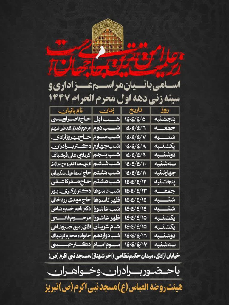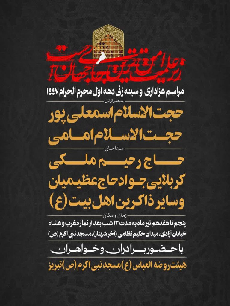 همزمان با حلول ماه محرم الحرام ماه عزای شهدای کربلا برنامه های عزاداری حسینی در مسجد نبی اکرم (ص) آغاز شد. در این محفل نورانی جمعی از عاشقان حسینی و ذاکرین اهل بیت علیهم السلام حضور داشتند.